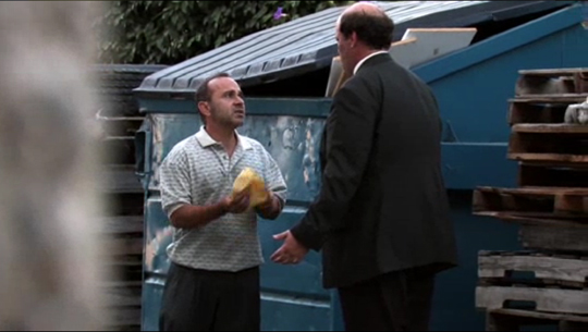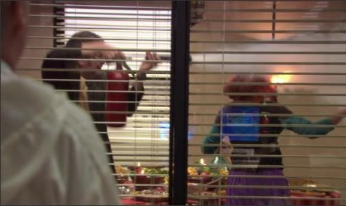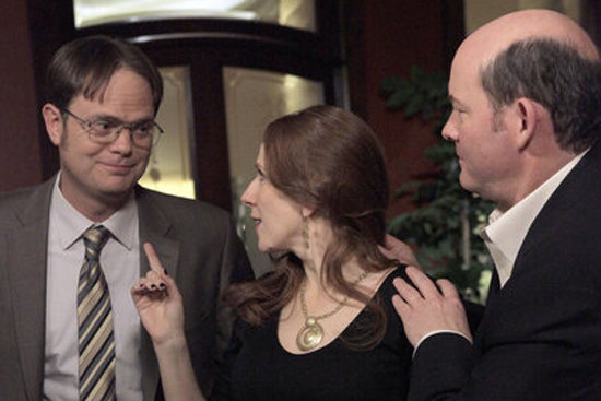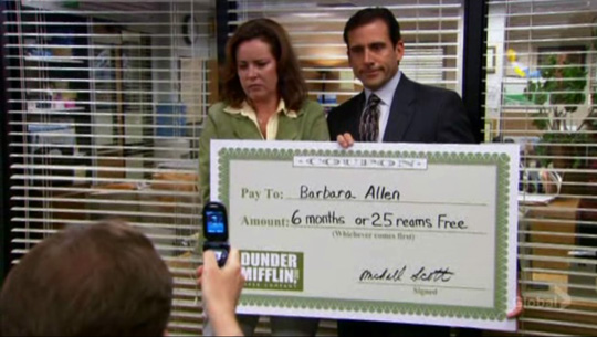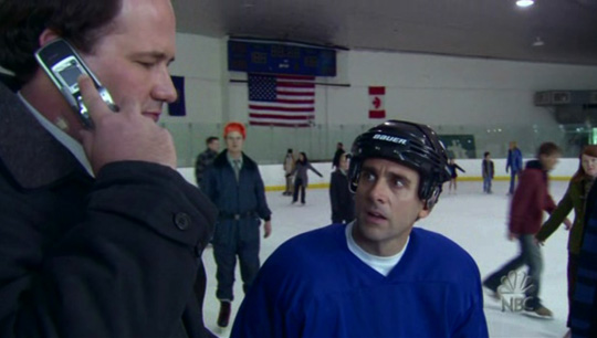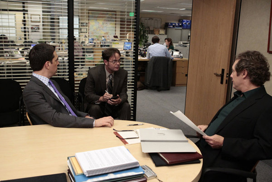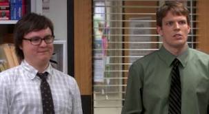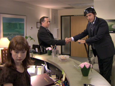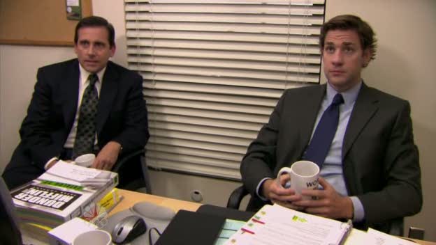 | Jim jokingly forms an "alliance" with Dwight when rumors of downsizing come about. | ||||