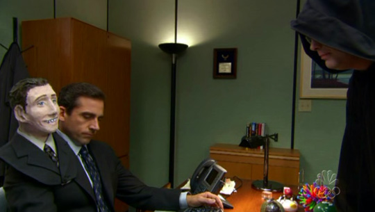 | It's Halloween in the office and Andy invites his college a cappella group to perform, which leads to a confrontation with his frenemy Broccoli Rob. Meanwhile, Dwight finds evidence that a madman is loose in the office and tries to track him down, and the first meeting of Jim's new job causes a fight with Pam. | ||||