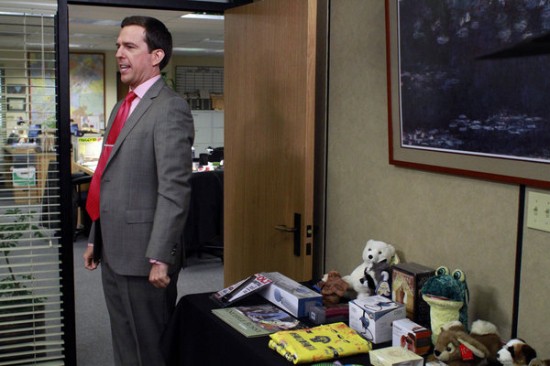 | Dwight and Angela compete in an office-wide paper airplane contest with a cash prize. Local talent agent Carla Fern helps Andy with his first acting role in an industrial film. Jim and Pam try to use new skills they have learned in couples counseling. | ||||