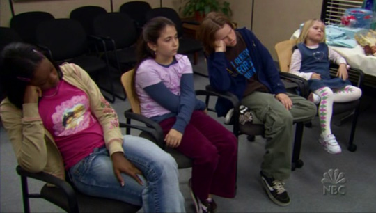 | After the corporate office discovers that Michael has been making insensitive remarks to his co-workers, they send a sensitivity trainer to the Scranton branch, but when Michael doesn't agree with everything the trainer says, he sets up his own sensitivity workshop. | ||||