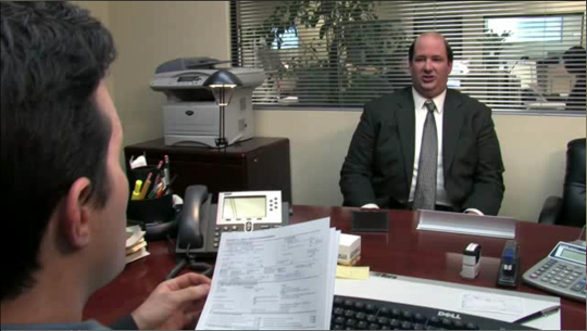 | The accountants look through Michael's office but only find that Michael has been making a bunch of small purchases at Jack's Joke and Magic Shop. | |||